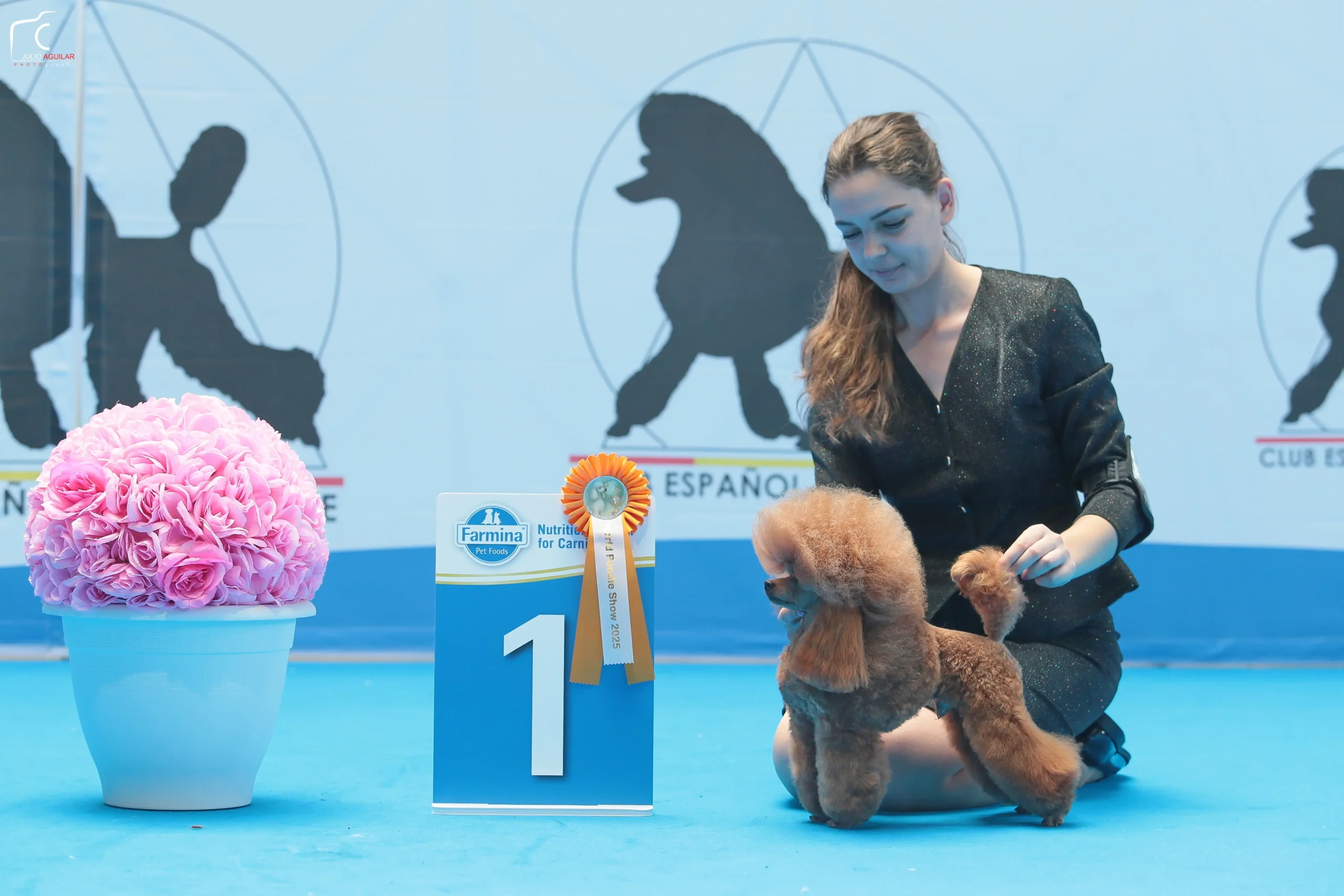 Camilo es un Caniche Toy que destaca por su expresión dulce, su estructura proporcionada y su carácter extremadamente equilibrado. Es un perro atento, cariñoso y muy conectado con las personas, cualidades que lo convierten en un excelente compañero y en un ejemplar con gran proyección dentro del programa de cría.